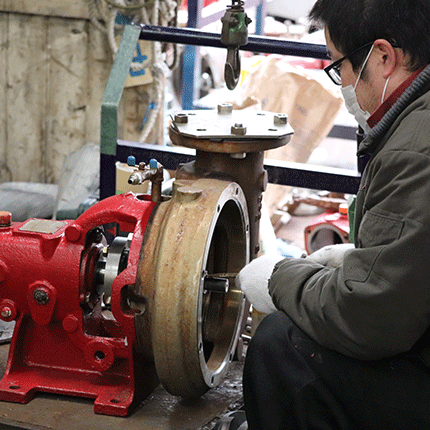 そのポンプを整備するのがポンプ整備業務です。日常的な点検は勿論、機能診断調査や機能保全計画の策定・実施などを行い問題なくポンプが稼働するように整備していきます。